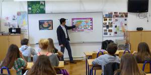 Lecture by Christian Wright an american diplomat (US Embassy Zagreb) for local elementary school students in elementary school Kruno