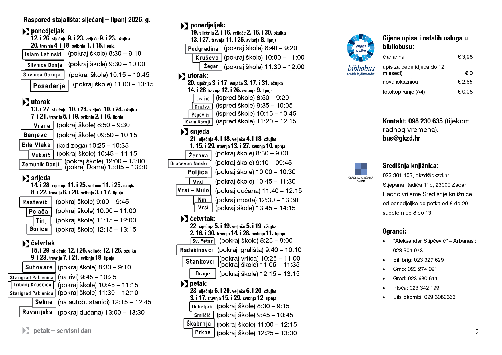 Zbog tehničkih poteškoća, bibliobus 2 Gradske knjižnice Zadar neće posjećivati stajališta u tjednu od 26. rujna do 1. listopada 2022.