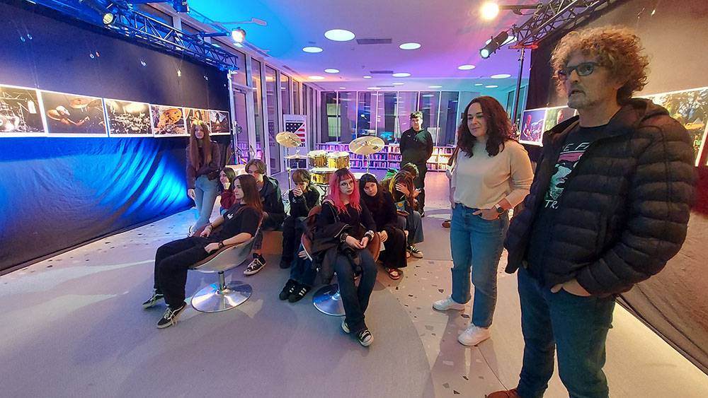 We organized another visit to the exhibition by students from the Natural History Graphic School in Zadar. They talked with the author of the exhibition, photographer Stipe Surać, about how the exhibition was created and organized, what equipment was used, and what are the challenges of photographing rock and roll concerts.