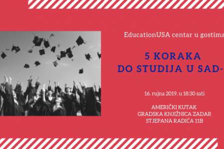 Želiš studirati u SAD-u? Trebaju ti informacije, a ne znaš gdje da ih pronađeš? Dođi na besplatno predavanje u Američki kutak u Gradskoj knjižnici Zadar i od savjetnice EducationUSA mreže saznaj sve što te zanima o studiranju u SAD-u i koracima koje je potrebno poduzeti da bi se upisao studij u SAD-u. Za dolazak je potrebna prijava na http://bit.ly/2m6Tf4f.