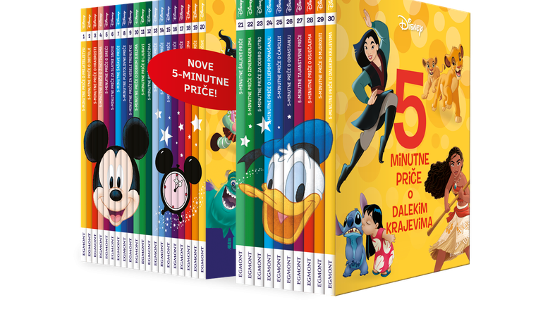 Kolekcija petominutnih priča uz omiljene Disneyjeve likove i velike ilustracije u boji donosi kratke, zanimljive i poučne priče.