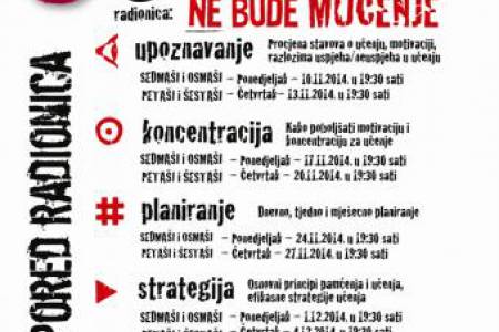 Radionice izvode studenti završnih godina studija psihologije u poticajnoj i opuštenoj atmosferi druženja s učenicima. Tako će, osim savladavanja tehnika efikasnijeg učenja, učenici imati prilike družiti se sa svojim vršnjacima i mladim osobama - studentima koji se i sami služe ovim tehnikama. Radionice su besplatne. Priređuju se u dvije grupe: 1) za učenike petih i šestih razreda i 2) za učenike sedmih i osmih razreda.