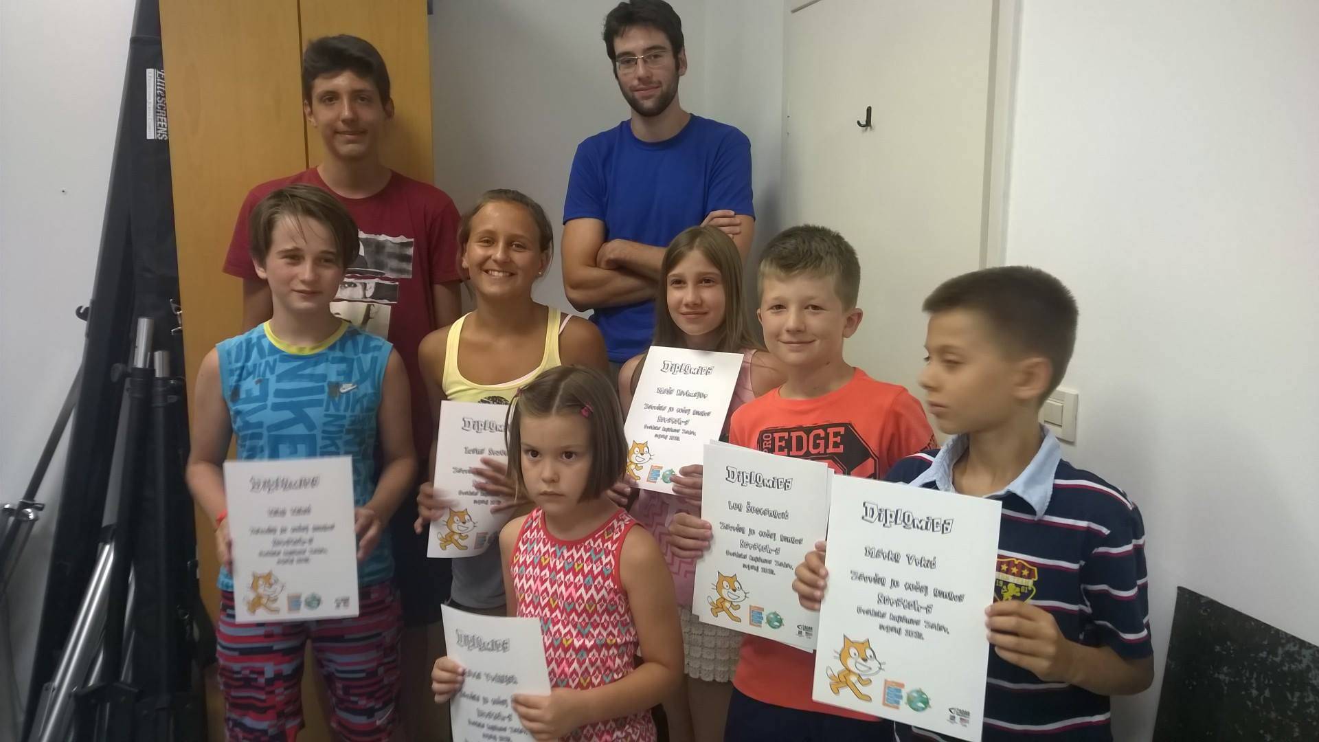 Podjelom "diplomica" prve dvije grupe završile su kratki tečaj Scratch-a u organizaciji Zadar Developers Hub-a i uz pomoć Američkog kutka Gradske knjižnice Zadar.