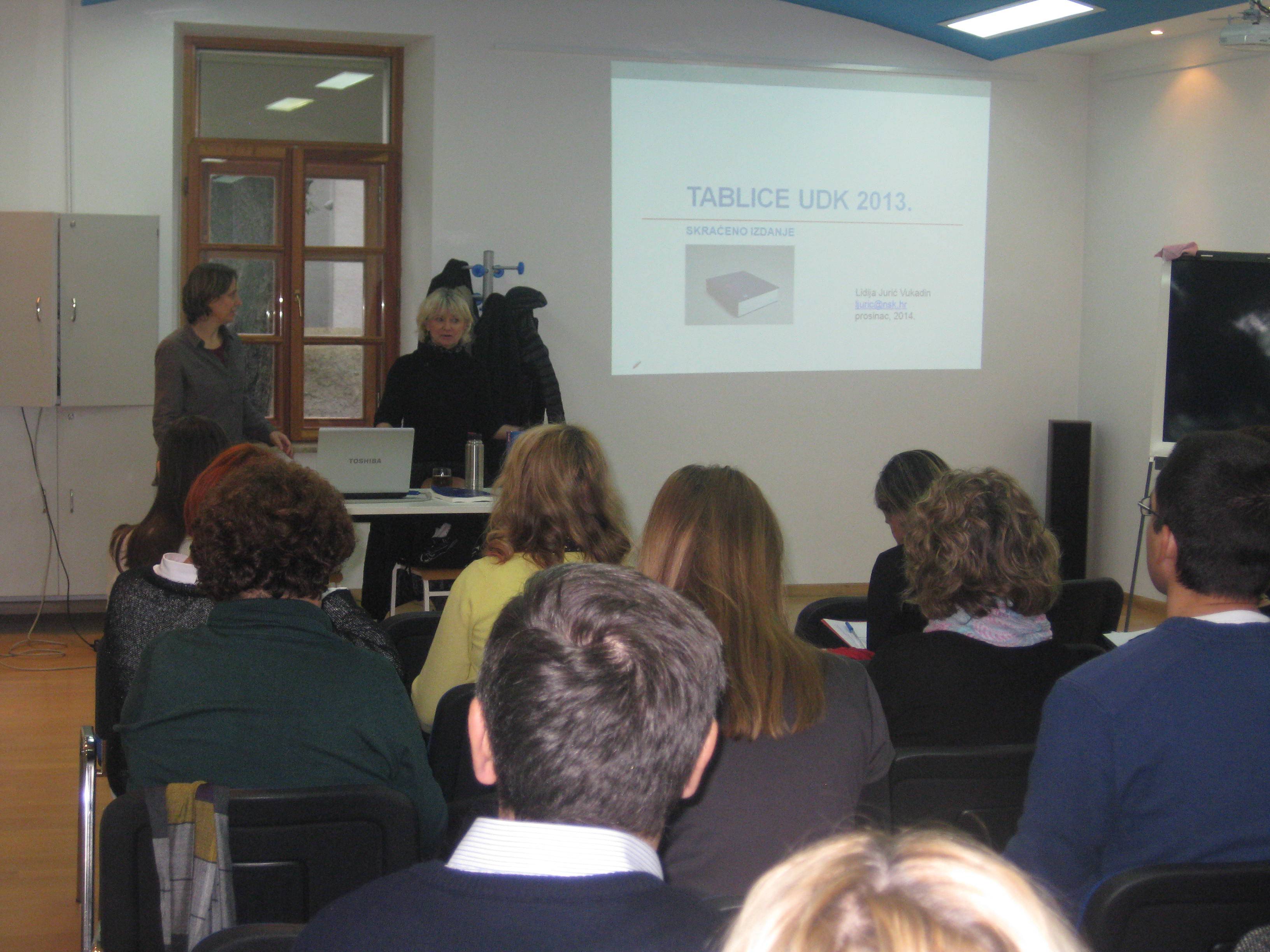 Predavanje za knjižničare UDK u praksi – novo izdanje UDK 2013. održala je Lidija Jurić Vukadin, prof. viša knjižničarka u Gradskoj knjižnici Zadar, Ogranku Arbanasi.