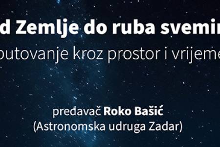 Gost predavač Roko Bašić iz Astronomske udruge Zadar, pored povijesnog pregleda od otkrića oblika zemlje do spoznaje o veličini i starosti svemira, komentirati će i nova otkrića, te valjanost naših trenutnih kozmoloških modela.