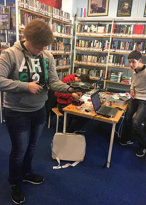 Airblock je modularni zrakoplov koji se može transformirati u dron, lebdjelice i druge oblike. Omogućuje upravljanje pametnim telefonima, tablet uređajima ili grafičkim prtogramiranjem. mogućnosti drona prezentirali su učenici srednje škole Vice Vlatković u Zadru