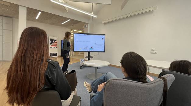 Knjižničarka Petra Stulić promovirala je u Američkom kutku Zadar uslugu e-LibraryUSA studentima Informacijskih znanosti Sveučilišta u Zadru.