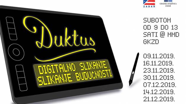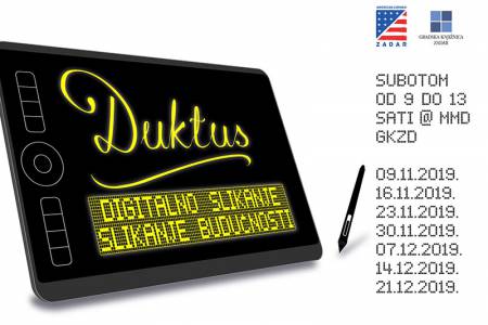 "Duktus: broj, slijed i smjer poteza pisaljkom ili kistom, npr. grafički stil oblikovanja i povezivanja slova." Duktus: digitalno slikanje - slikanje budućnosti je nov program kojim želimo mladim neafirmiranim umjetnicima otvoriti vrata u svijet digitalne umjetnosti. Riječ je o ciklusu radionica osnova slikanja pomoću grafičkog tableta i računalnog programa. Ciklus obuhvaća 6 radionica. Radionice su namijenjene mladima koji vole crtati/slikati, a vodi ih profesor Boris Lukić.