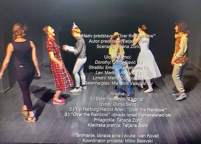 Group of eighth grade students with professor Tatjana Zorić from the Elementary School Kruno Krstić in Zadar recorded an educational musical in cooperation with the American Corner Zadar, Zadar Public Library and the Zadar Puppet Theater. The intention and desire is to bring the students emotionally closer to the Holocaust and suffering of the Jews through the well-known film "The Wizard of Oz" and the song "Over the Rainbow".