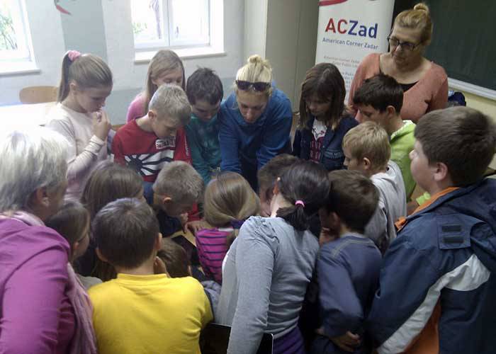 iPad foto radionica (Lucija Juravić) za djecu u mjestu Karin Gornji. Organizator: Američki kutak i Bibliobusna služba Gradske knjižnice Zadar