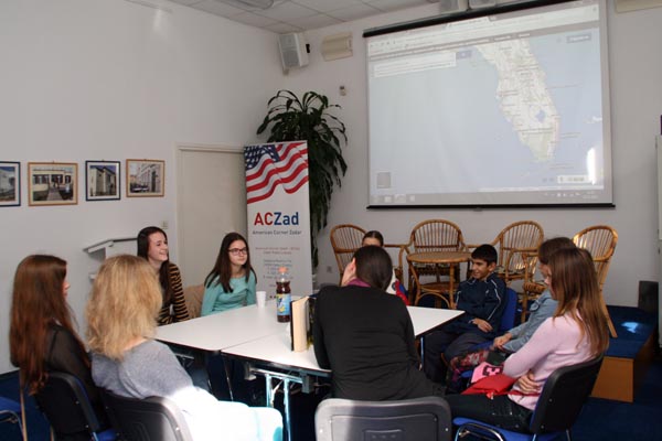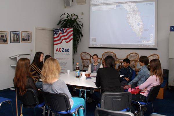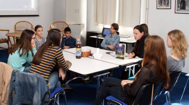 American teens are new members of the Book Club „Knjigolovci“. They discussed the book „Hoot“ by the American author Carl Hiassen.