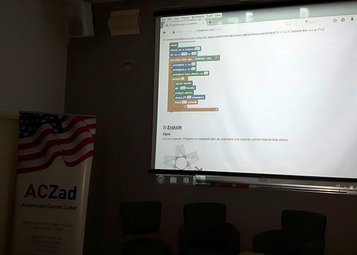 cratch: learning the basis of graphic programming organized by the Center for Excellence in Zadar (Prof. Anita Nikić). Scratch is a free programming language and online community where you can create your own interactive stories, games, and animations.