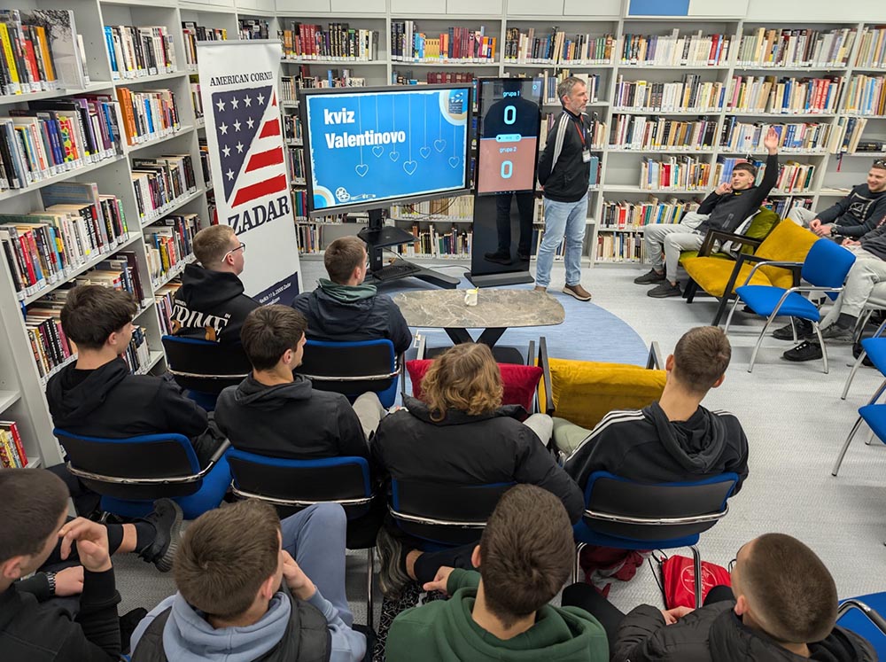 Kviz za učenike Tehničke škole u Zadru. Quiz for students of the Technical School in Zadar. Kategorija događanja: Kviz Tagovi: Američki kutakAmerican Cornerquizfilmski kviz