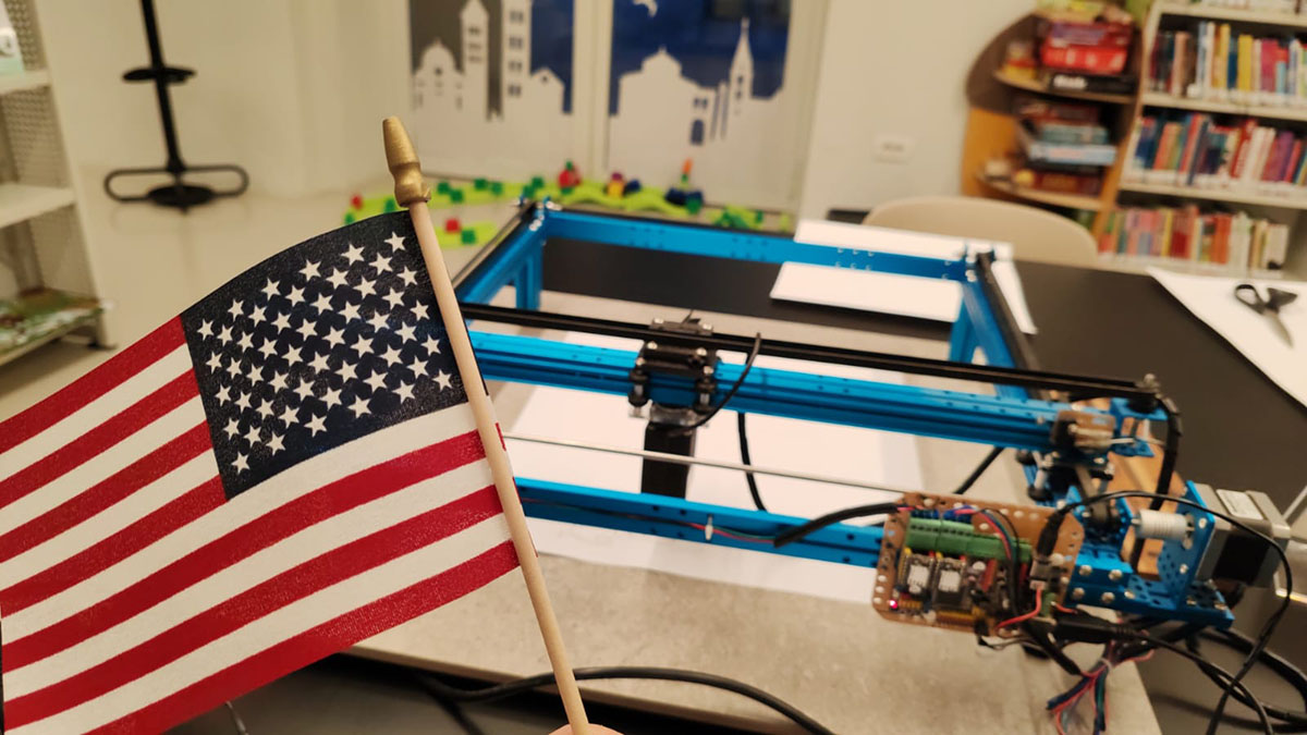 Museum night? Yes, in the area "2 palaces" in the Grad library branch, we organized a creative workshop about Marko Marulić, the father of Croatian literature. With the help of the Makeblock LaserBot engraving cutter, we made a poster. We worked late into the night, until 10 in the evening.