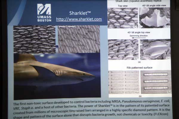 - what is this "Sharklet" (sterile artificial material formed on the model of imitation of shark skin that is resistant to bacteria and dirt) and how we use it nowadays