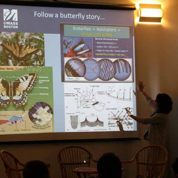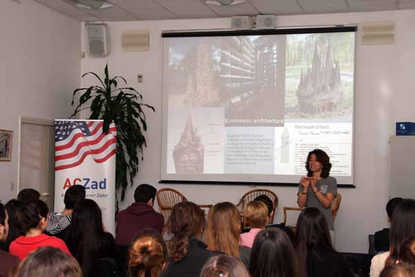 Prilikom susreta sa zadarskim srednjoškolcima dr. Anamarija Frankić (SAD, University of Massachusetts Boston) upoznala ih je na svom predavanju što je biomimikrija, što možemo naučiti iz 3.8 milijardi godina postojanja života, koje su pouke koje čovjek može izvući iz prirode, kako ih iskoristiti, patentirati i ideju primjeniti u praktičnom životu. Vidjeli smo niz zanimljivih primjera: