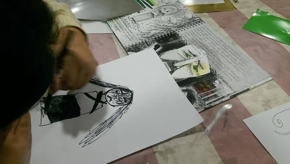 Nekoliko fotografija s današnje radionice u Ogranku Ploča na kojoj smo uz vodstvo prof. Bojane Vukojević i prof. Ane Debelić iz Škole Primijenjene umjetnosti i dizajna Zadar crtali ilustracije prema slikovnici "Bura".