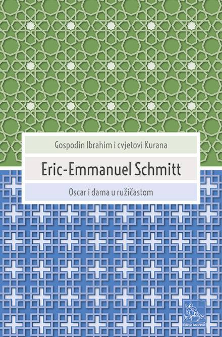 Edicija Božičević izdala je dva kratka romana u jednoj knjizi, francuskog književnika E. E. Schmitta - Gospodin Ibrahim i cvjetovi Kurana te Oscar i dama u ružičastom. Važnu ulogu u Schmittovim djelima zauzimaju svjetske religije. U romanu Gospodin Ibrahim i cvjetovi Kurana obrađuje sufizam - mistični pravac islama, ali i židovstvo, dok u romanu Oscar i dama u ružičastom obrađuje kršćanstvo. Oba romana kroz svoje neobične junake govore o radosti življenja, vrijednosti dubokog vjerovanja i bogatstvu iskrenog prijateljstva. U prvom romanu, Momo, jedanaestogodišnji dječak kojeg je majka napustila odmah po rođenju, a kasnije i otac, kod gospodina Ibrahima pronalazi toplinu, pažnju i nježnost. Gospodin Ibrahim i Momo potpuno su sami i jedan drugome pružaju ono najvažnije - ljubav, usprkos različitostima i predrasudama vezanim za dob i kulturu. Ibrahim će dječaku postati drugi otac kakvog je oduvijek želio imati. Prožet sufijskom mudrošću, gospodin Ibrahim će biti inspiracija i vodič za dječaka na njegovom životnom putu.