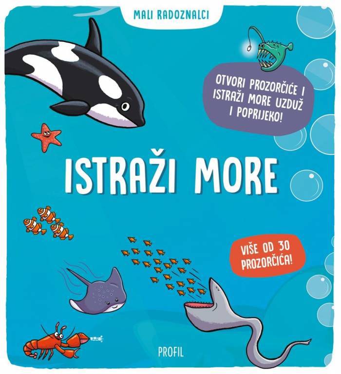 Putovanje morskim dubinama za male radoznalce... svi oni koji će otvoriti ovu knjigu zaronit će u potpuno drugačiji svijet u morskim dubinama. Ova je knjiga zabavan uvod u život pod morem, djeca će čitajući je i otvarajući više od 30 prozorčića djeca će otkriti brojne zanimljivosti o žestokim grabežljivcima, upoznat će najbrže ribe i doznati kolike udaljenosti prevaljuju kornjače i dr.