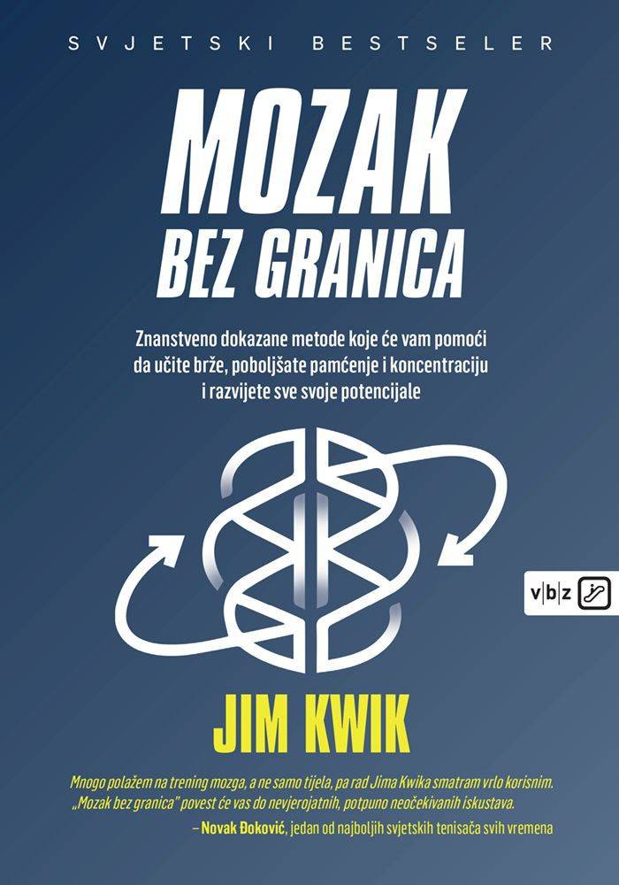 Možda je knjiga Jima Kwika Mozak bez granica baš ona knjiga koja vam je potrebna da biste se ostvarili uz pomoć svih svojih potencijala, ali, eto, ne ide vam od ruke? Možda je razlog tome u načinu razmišljanja, motivaciji i metodama kojima se koristite, u vašoj usredotočenosti? Možda je krivac suvremeno digitalno doba u kojem smo zatrpani bujicom informacija, nedostatkom pažnje i pamćenja, ponuđenim zaključcima? Prema Kwiku tri su ključa za postizanje života bez ograničenja: razmišljanje, motivacija i upotreba ispravne metode. U prvom slučaju potrebno je uskladiti način razmišljanja sa željama ili ciljevima, ali prije toga treba identificirati postojeća uvjerenja i stavove koji ograničavaju te ih se osloboditi. Sposobnost da se bude ono što se želi trebala bi biti dobar motiv za preoblikovanje života. Pokreće se energijom koju dobivamo pravilnom prehranom, vježbanjem i kvalitetnim snom. Učenje, usredotočenost, poboljšanje pamćenja, brzo čitanje i kritičko razmišljanje metode su koje donose osobnu preobrazbu, a kako sve to ostvariti, otkrijte u priručniku Mozak bez granica. Jim Kwik poznati je svjetski stručnjak za poboljšanje pamćenja, optimiziranje mozga i bržeg učenja. Nakon ozljede mozga u djetinjstvu imao je poteškoća s učenjem i sâm se mnogo trudio kako bi imao uspjeha. Osmislio je strategije koje su poboljšale njegove mentalne sposobnosti. To mu je odredilo budući život u kojem se posvetio radu trenera za mozak. Radio je s mnogim poznatim i slavnim osobama.
