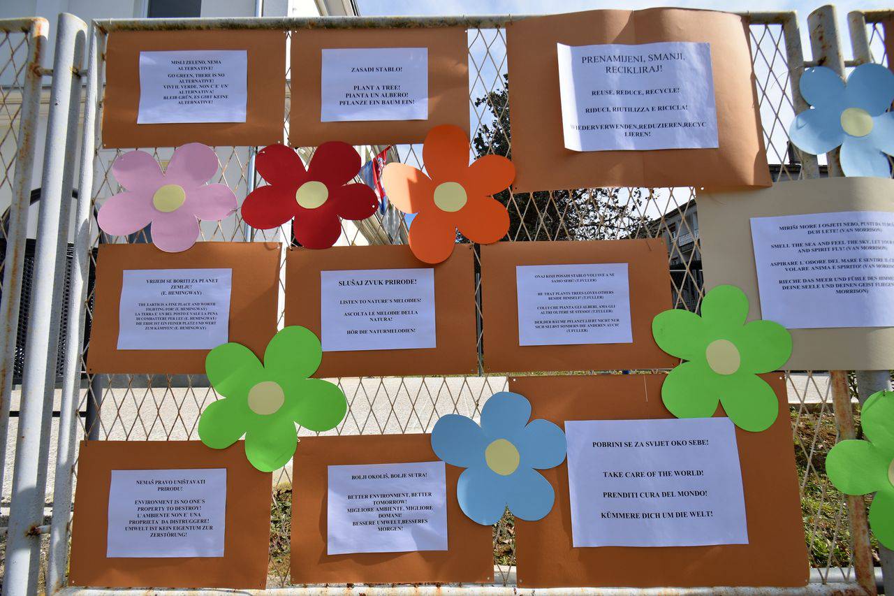 - U suradnji s Osnovnom školom Šimuna Kožičića Benje , s profesorima engleskog i njemačkog jezika, Irenom Rukavinom i Ivkom Šarlijom, potakli smo djecu na razmišljanje o ekologiji i ekološkim problemima planeta Zemlje. Učenici su upoznati s akcijama koje se provode kroz globalni klimatski štrajk te su svoj protest izrazili kroz protestne poruke koje su napisali na hrvatskom, s prijevodima na engleski, talijanski i njemački jezik. Sve njihove poruke izložili smo na zidu ograde ispred Gradske Knjižnice Zadar.