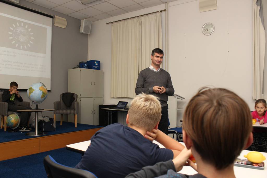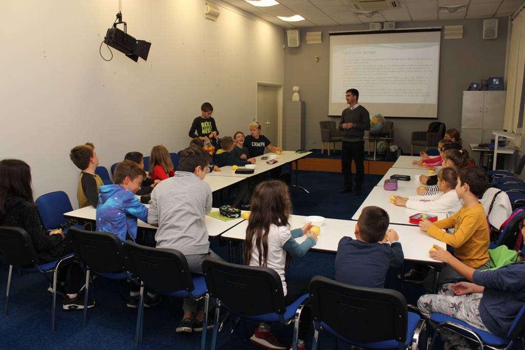 Fotografija sa sinoćnje radionice Mali geografi koju je vodio prof.dr.sc. Josip Faričić sa Sveučilišta u Zadru. Mali geografi nastao je kao zajednička inicijativa Hrvatskog geografskog društva – Zadar, Odjela za geografiju Sveučilišta u Zadru i Gradske knjižnice Zadar.
