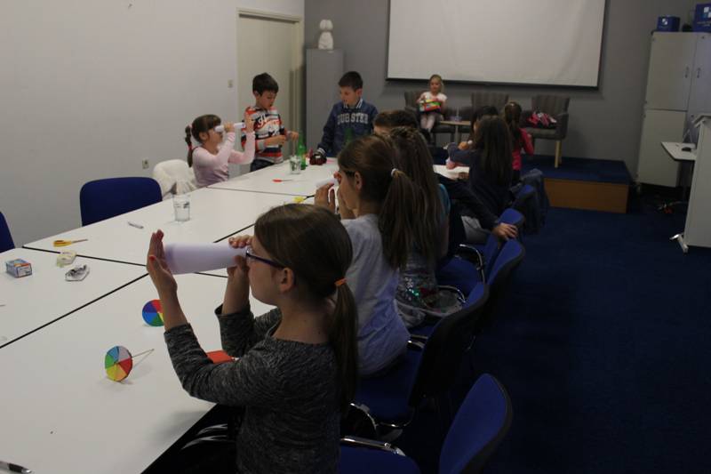 Nekoliko fotografija s radionice u sklopu ciklusa Mali znanstvenici. Ovaj put obradili smo teme svjetlosti i zvuka.