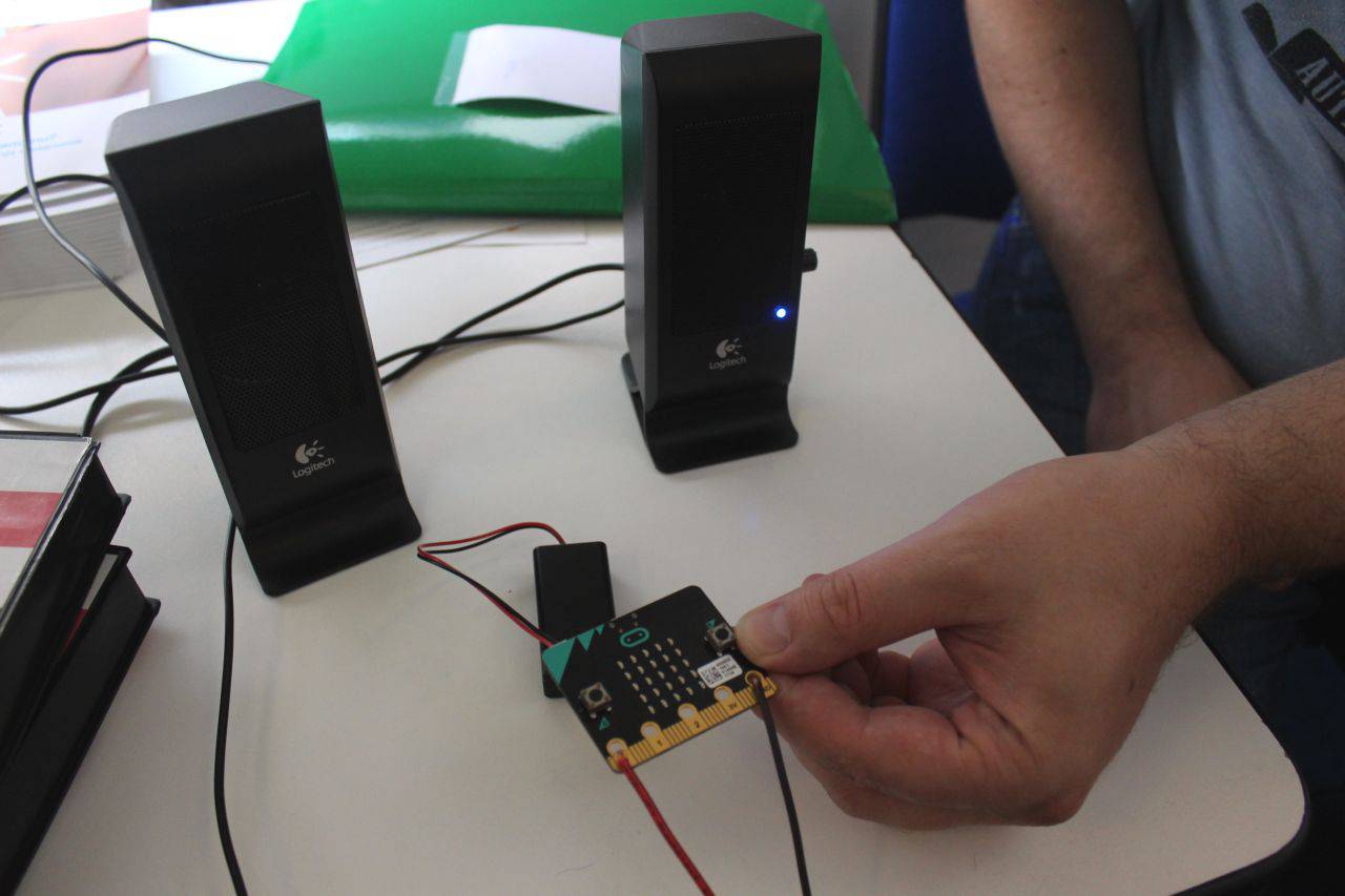 U Gradskoj knjižnici Zadar završen je još jedan ciklus uvodne radionice programiranja micro:bitova. Ovoga puta smo učili kako programirati glazbu. Potom smo program prebacili na Micro:bit kojeg smo spojili na zvučnike i slušali rezultate programiranja.