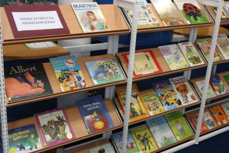 Pred ulazom Dječjeg odjela smjestili smo nove izložbene police kako bismo građu našeg Odjela približili što većem broju korisnika. Započeli smo izložbom slikovnica koje je oslikala Dubravka Kolanović, nastavili slikovnicama na engleskom jeziku, a ovoga tjedna predstavljamo slikovnice i knjige na njemačkom jeziku.