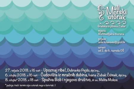 Mali Morski utorak dobio je svoj prvi ciklus radionica. Gradska knjižnica Zadar u suradnji s Odjelom za ekologiju, agronomiju i akvakulturu Sveučilišta u Zadru organizira ciklus od tri radionice: