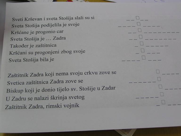 Povodom blagdana Sv. Stošije u ogranku Bili brig održana je radionica za djecu Zaštitnici Zadra - Sv. Stošija. Radionicu je vodila mag. oec. Kristina Gilja. Naučeno na radionici djeca su odmah provjerila u kratkom kvizu znanja.
