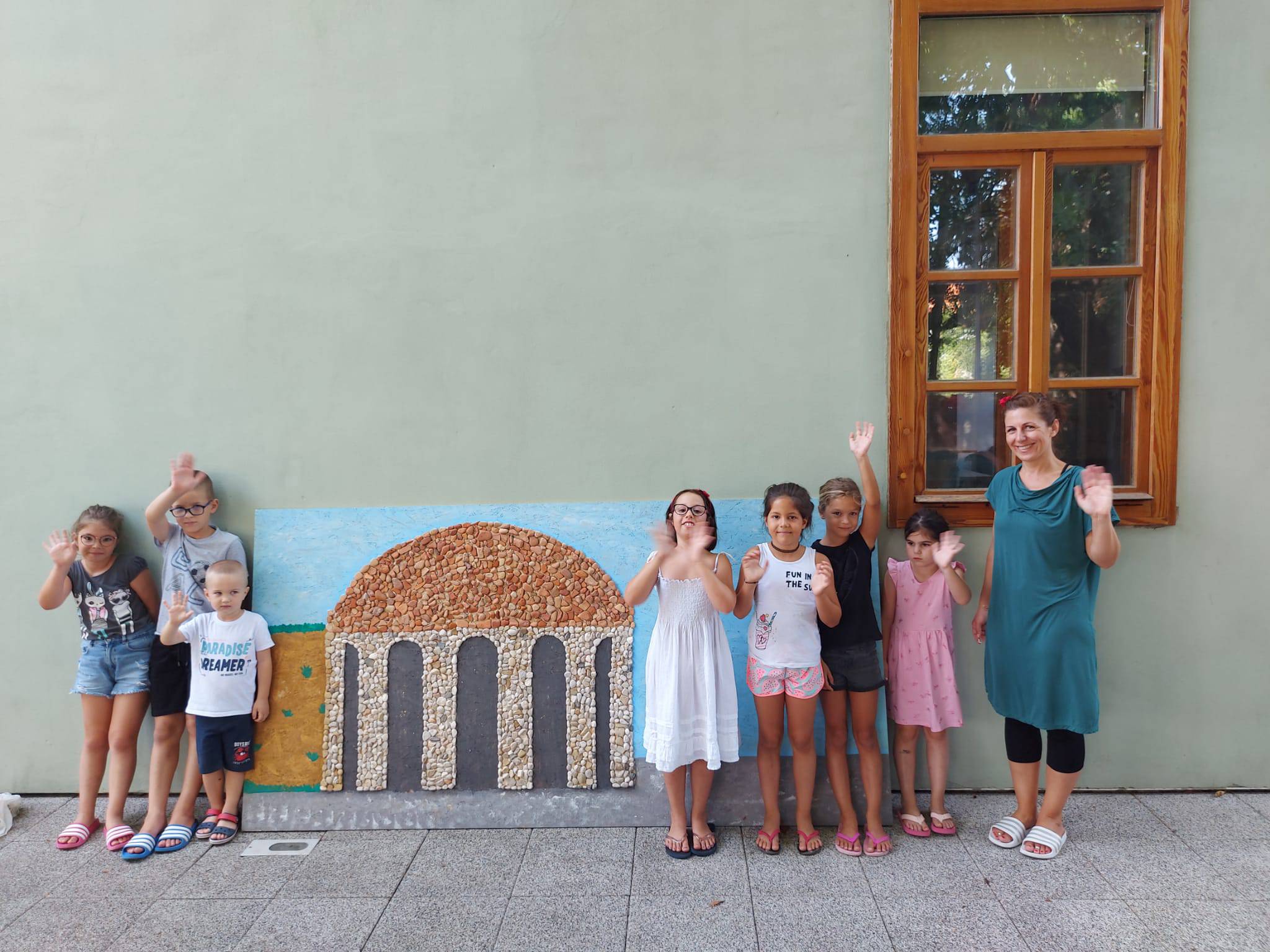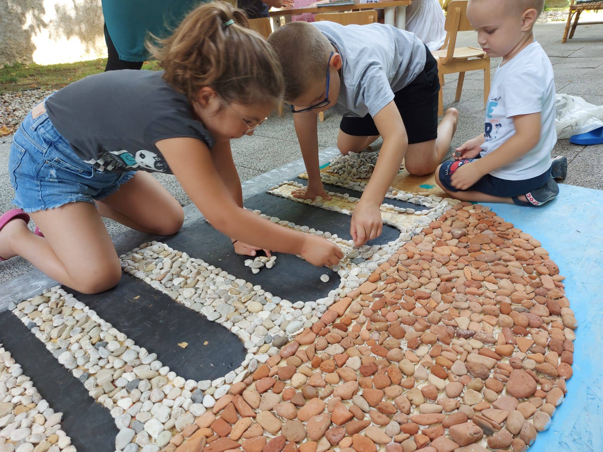Jutros je dovršen mozaik arbanaške Fontane kojeg smo tijekom srpnja izrađivali, u Ogranku "Aleksandar Stipčević" - Arbanasi, na radionicama "Čuvari baštine". Po iscrtanim obrisima vrijedni, mali čuvari baštine lijepili su oblutke i kamenčiće. Donosimo fotografije s današnje, završne radionice i druženja.