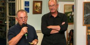 Fotografije s otvorenja izložbe "Paško i tata". Otac Denis i sin Paško Laća izložili su svoje radove, Paško od plastelina, a Denis slike, kompozicije, skulpture napravljene od najrazličitijih materijala.