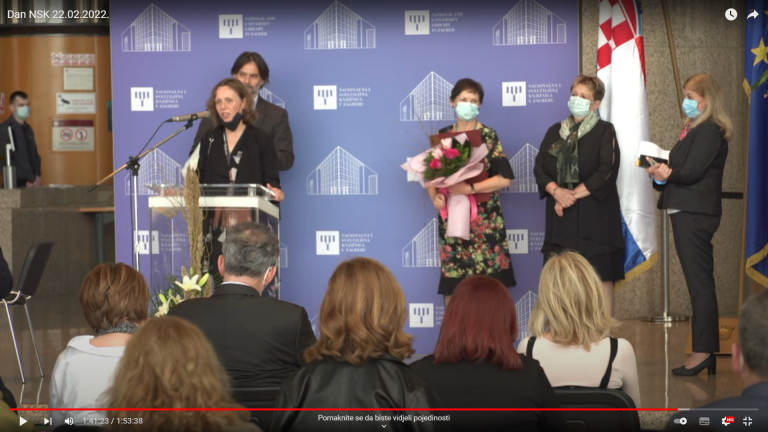 Čestitamo Dan Nacionalne i sveučilišne knjižnice u Zagrebu koji se obilježava danas, 22. veljače 2022. godine. Također, čestitamo našoj kolegici Nadi Radman na primljenoj nagradi - Nagradi i priznanju Nacionalne i sveučilišne knjižnice u Zagrebu. Iako nismo mogli biti fizički prisutni u Zagrebu, pratili smo prijenos dodjele preko YouTube kanala NSK.