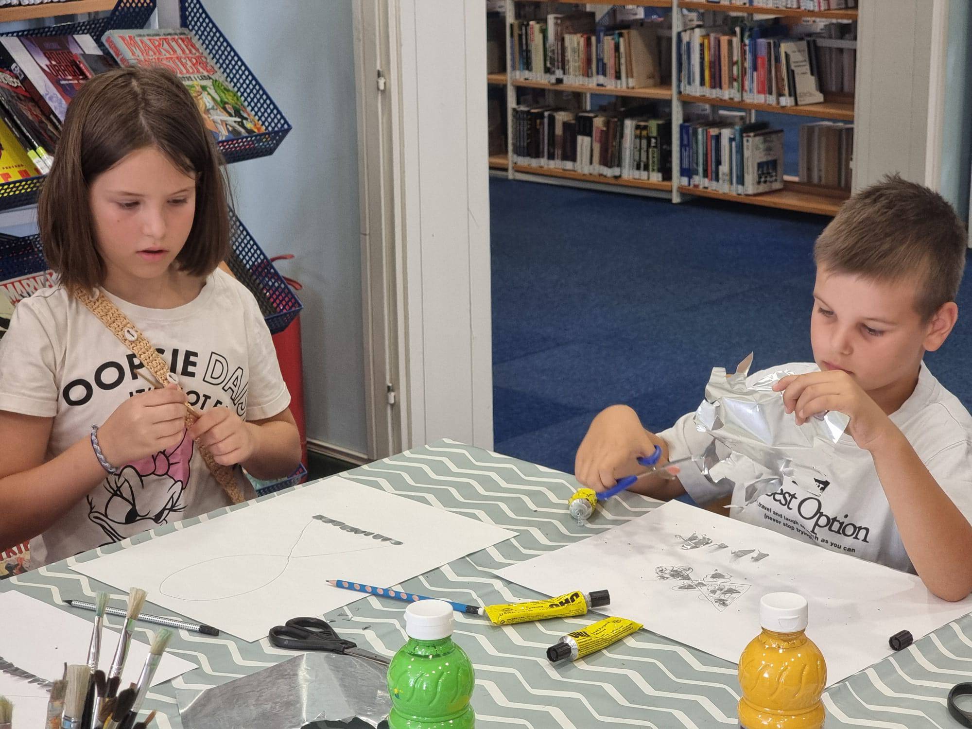 Fotografije s današnje kreativne radionice u sklopu programa Ljeto u Knjižnici 2024. Tema radionice bila je: Zlatna ribica