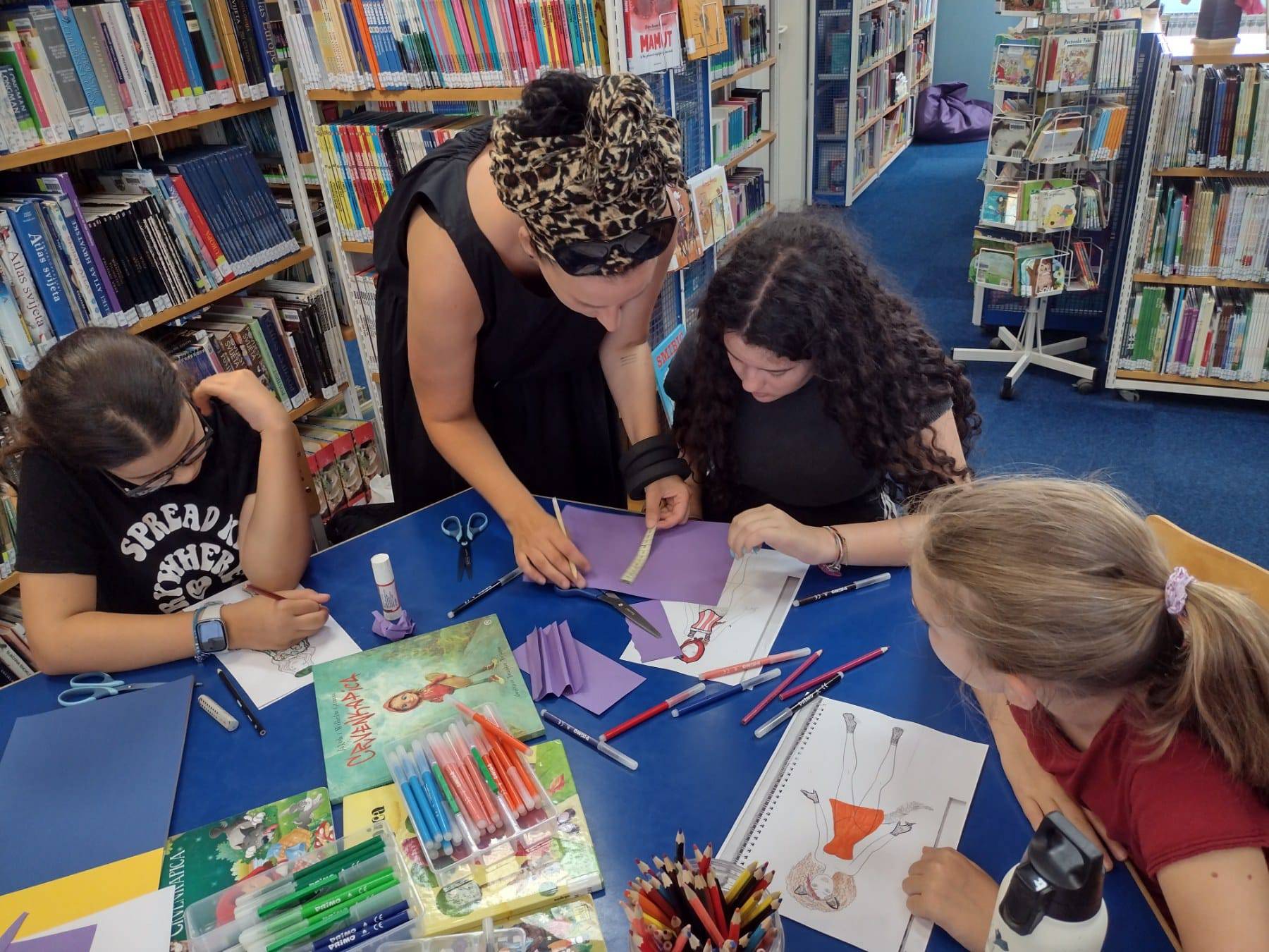 Fotografije s današnje kreativne radionice u sklopu programa Ljeto u Knjižnici 2024. koju je vodila zadarska kazališna kostimografkinja Anita Goreta.