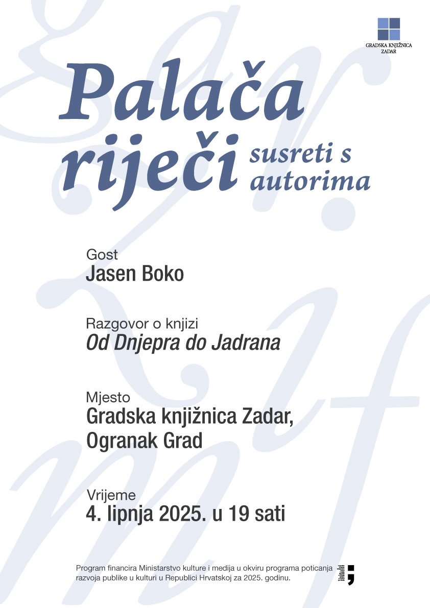 Autor će kroz predavanje predstaviti knjigu Od Dnjepra do Jadrana.