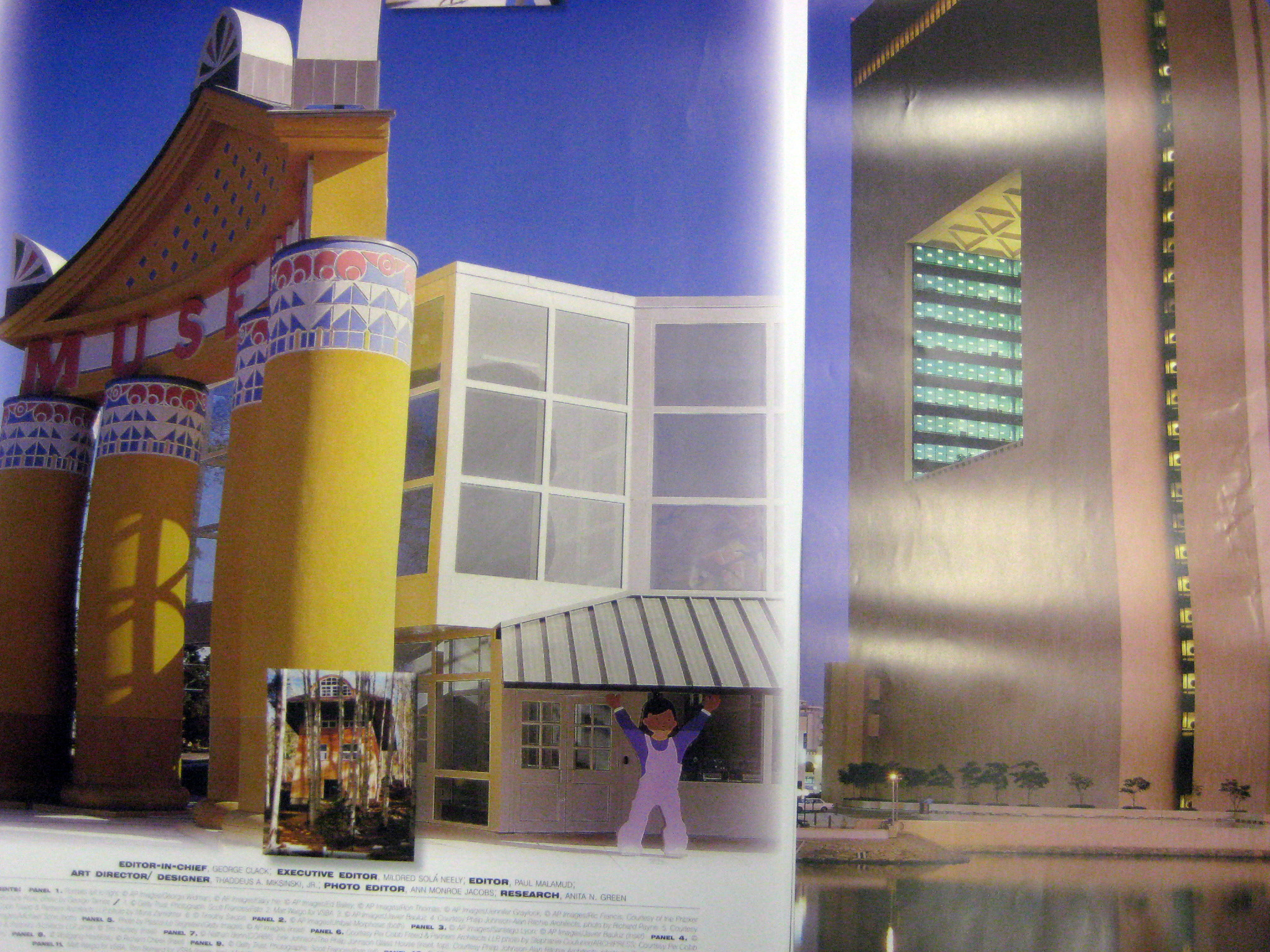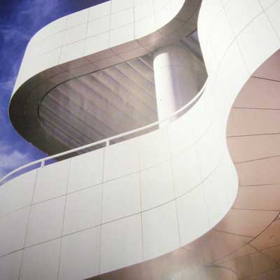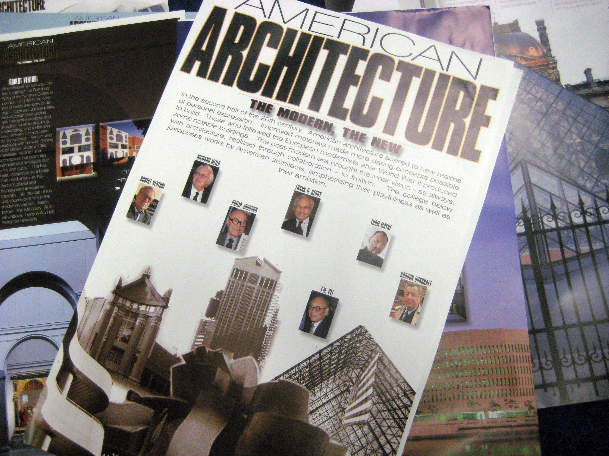 In the second half of the 20th century, American architecture soared to new realms of personal expression. Improved materials made more daring concepts possible to build. Those who followed the European modernists after World War II produced some notable buildings. The post-modern era brought the inner vision – as always, with architecture, realized thorugh collaboration – to fruition. The collage below juxtaposes works by American architects, emphasizing their playfulness as well as their ambition.