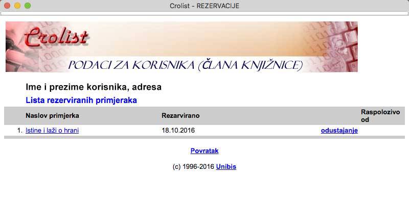 Rezervacija ističe 48 sati od povratka primjerka u Knjižnicu.