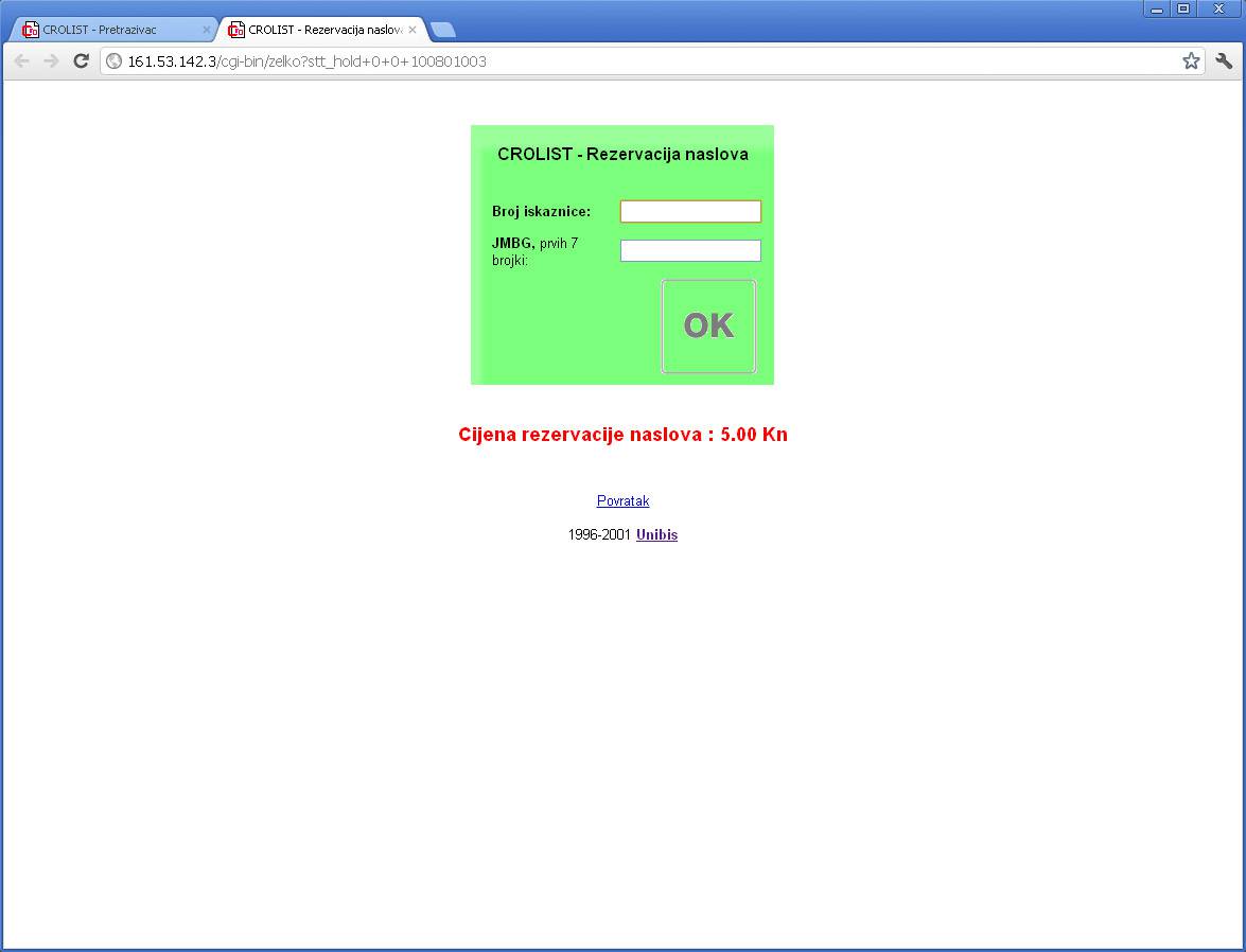 Napominjemo da se rezervacija građe naplaćuje 0,66 EUR po rezerviranom primjerku.
