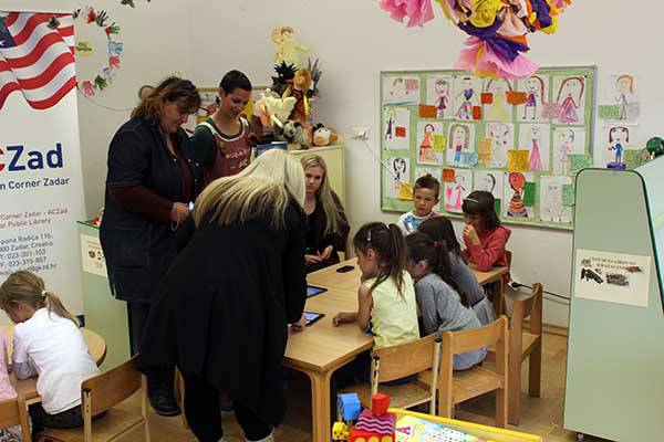 In the kindergarten Sunce-CicibanZadar prof. Anita Nikic (Zadar Developer Hub) showed children iPad coding program ScratchJr which are programmed together and create interactive game