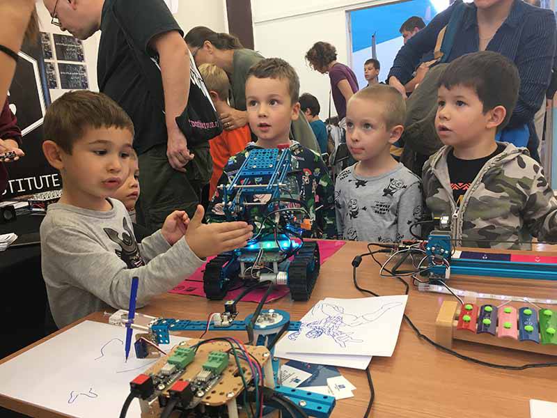 Presentation of STEM robotics program GENERATOR (laser engraver and cutter, robot drawing set and music robot) at the Maker Faire Zagreb (Nikola Tesla Technical Museum).