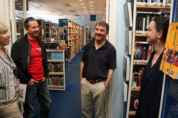 Stacia Clifton (Information Resource Officer, U.S. Embassy Belgrade), Marica Bahlen, profesor Brannon Andersen i Milko Belevski u Američkom kutku Zadar (Gradska knjižnica Zadar)