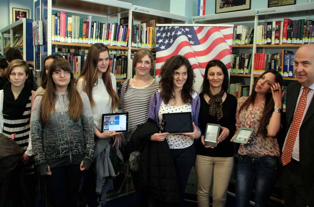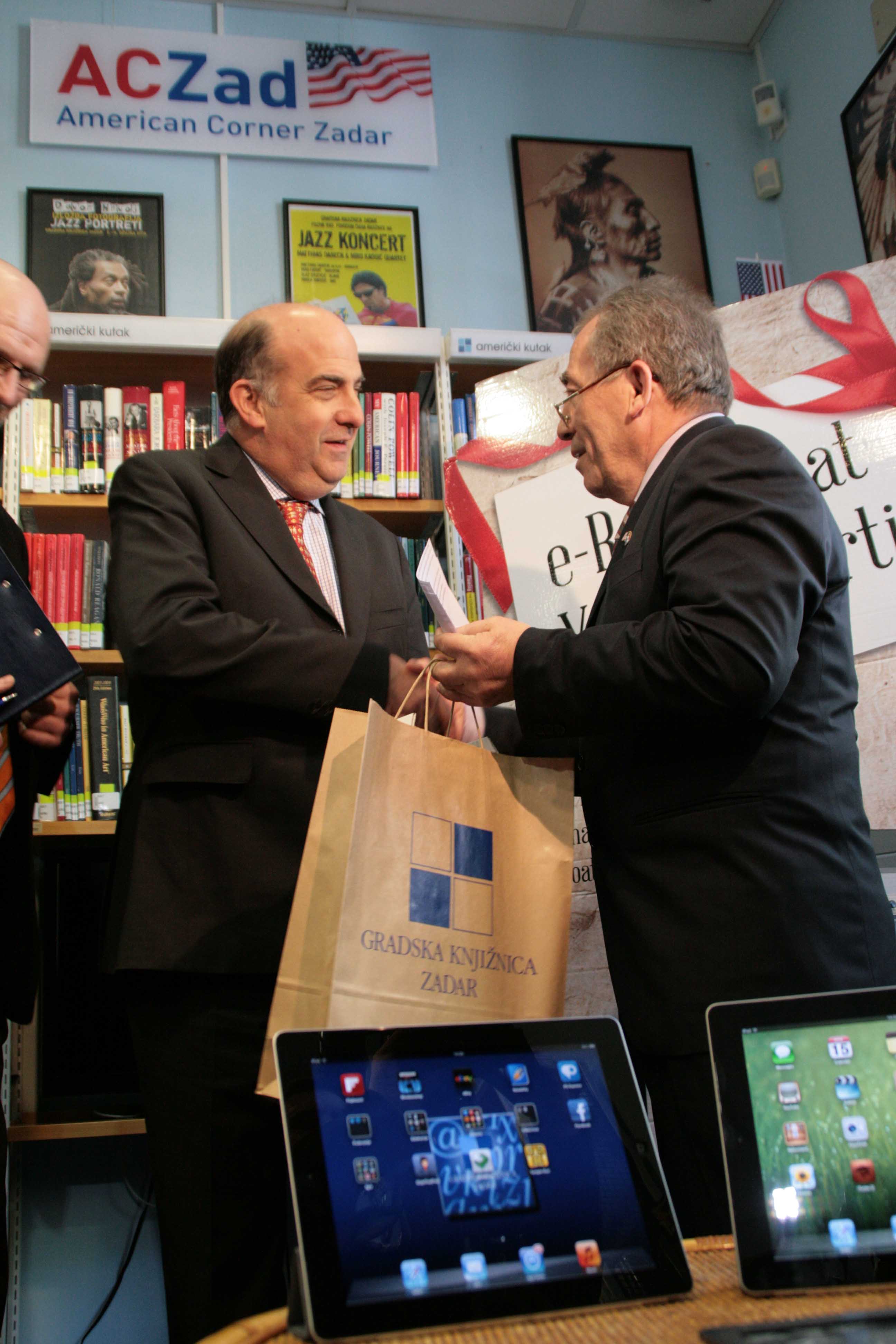 Prilikom posjeta Zadru veleposlanik SAD-a u Republici Hrvatskoj gospodin Kenneth Merten Gradskoj knjižnici Zadar u Američkom kutku donirao je Kindle e-čitače povodom nastavka programa računalne edukacije (iPad radionice, računalne radionice, nabava e-knjiga i e-časopisa...).