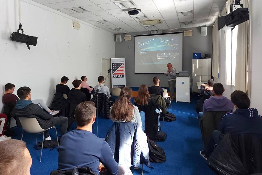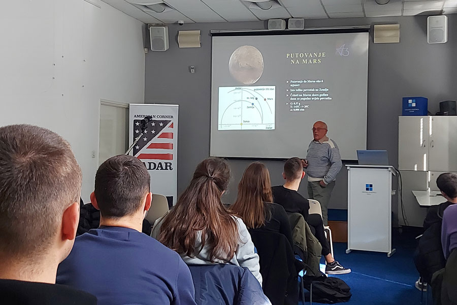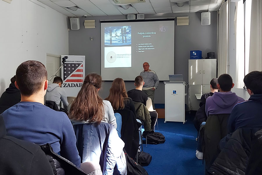 The lecture is intended for students of technical schools in Zadar. The lecturer is Dr. Slobodan Danko Bosanac, a Croatian physicist at the Ruđer Bošković Institute who specializes in atomic, molecular physics and astrophysics. He is the president of the Adriatic Aerospace Association, which includes in its scope of activities the popularization of science and technology with an emphasis on aerospace topics.