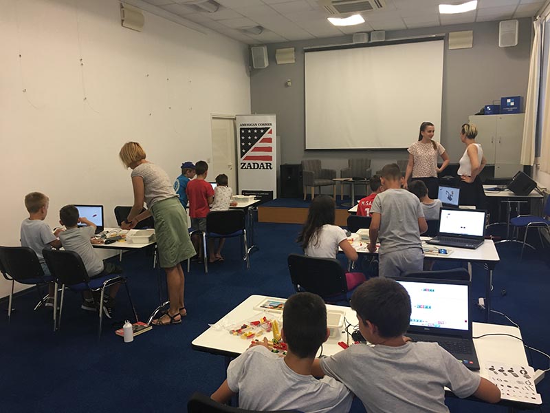 STEM radionica Mali znanstvenici - Lego Education namijenjene učenicima nižih razreda osnovne škole. Polaznici radionica supomoću igračaka napravili prve korake programiranja te se upoznali s osnovama robotike, a sve uz pomoć računala i edukativnih LEGO Wedo setova. Organizatori: Američki kutak Gradske knjižnice Zadar i Centar izvrsnosti za fiziku Grada Zadra.