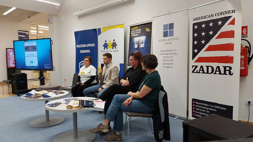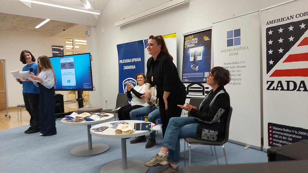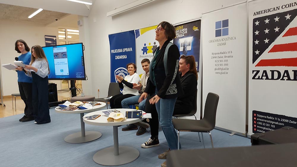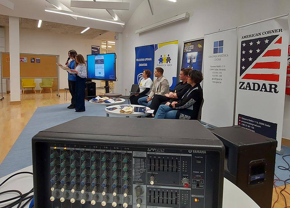 The Youth Department of the American Corner of the Zadar City Library hosted a panel discussion by the Franjo Petrić High School Zadar in partnership with the Zadar Police Department and the University of Zadar. The project "Internet Safety: Play Smart, Live Safe" is aimed at developing students' digital and media competences, raising awareness of cyber security, and recognizing and responding appropriately to various forms of cyberbullying and online fraud. Co-organizers are the Zadar Police Department, the Department of Information Sciences and Technologies of the University of Zadar, and the Zadar City Library.