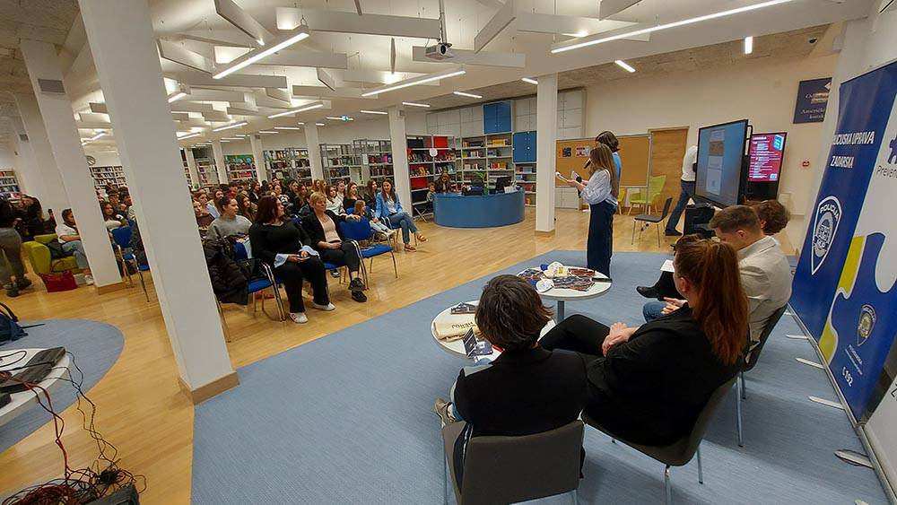 Na Odjelu za mlade u Američkom kutku Gradske knjižnice Zadar održana je tribina Gimnazije Franje Petrića Zadar u partnerstvu sa Policijskom upravom zadarskom i Sveučilištem u Zadru. Projekt "Sigurnost na internetu: klaikni pametno, živi sigurno" usmjeren je na razvijanje digitalnih i medijskih kompetencija učenika, jačanje svijesti o kibernetičkoj sigurnosti te prepoznavanje i pravilno reagiranje na različite oblike kibernetičkog nasilja i online prijevara. Suorganizatori su Policijska uprava zadarska, Odjel za informacijske znanosti i tehnologije Sveučilišta u Zadru i Gradska knjižnica Zadar.