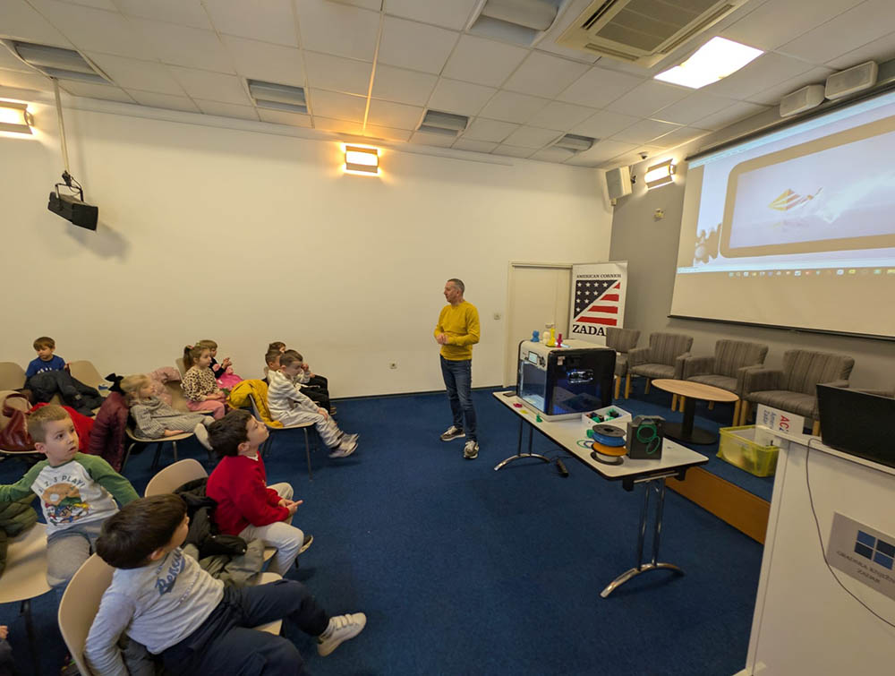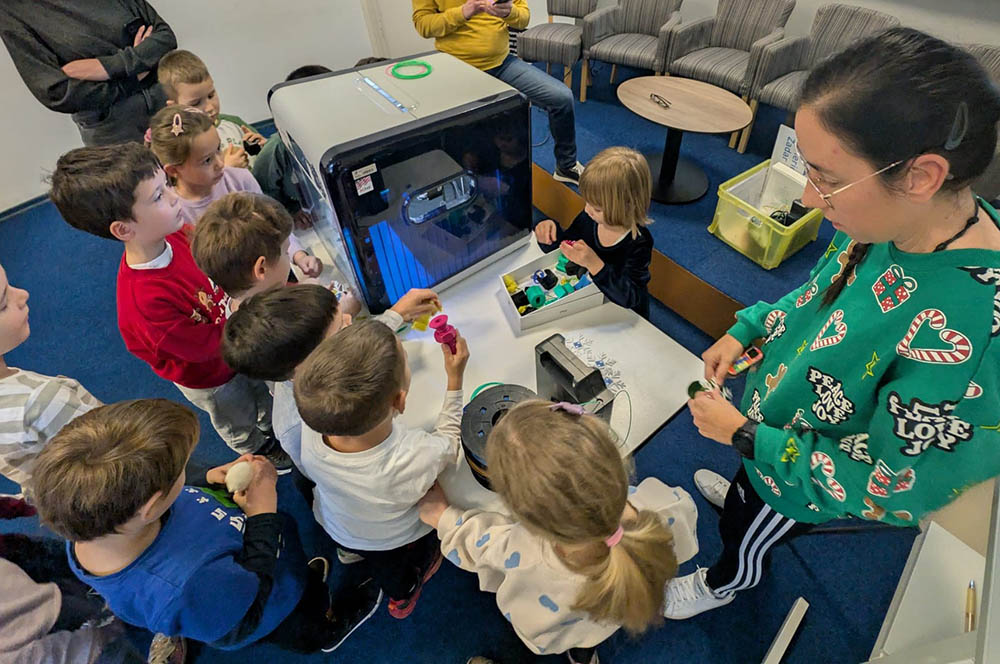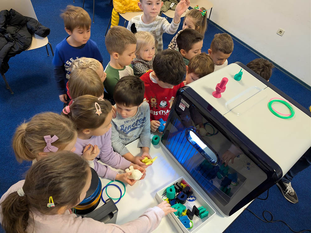 3D printer STEM workshop and making Christmas decorations. The workshop for children from the Maslačak kindergarten was organized was organized at the Children's Department of the Library.
