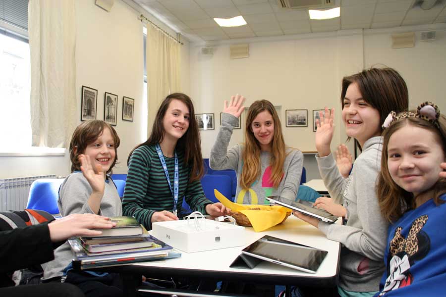 Članovi dječjeg kluba čitatelja (voditeljica Žozefina Žentil Barić) čitaju knjige na iPad uređajima